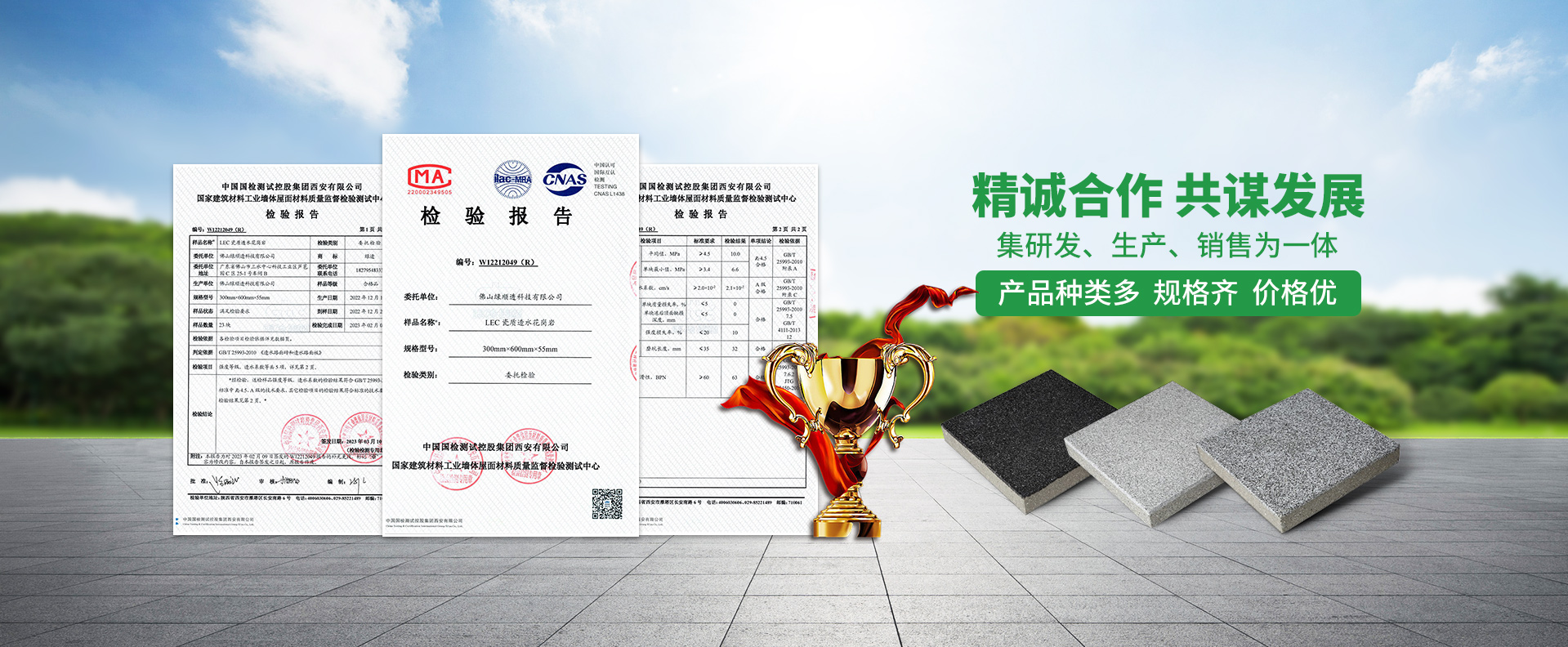 佛山綠順透科技有限公司,地處中國陶瓷基地“廣東佛山”,歷史悠久,人杰地靈,交通發達,資源豐富,是一座現代化工業城市。綠順透科技是一家集科研、開發、生產、銷售為一體,是目前國內外規模較大的專業生產研發生態陶瓷透水磚的現代企業。公司工廠占地面積10萬m2,總投資過億人民幣,配套二個先進精細原料加工廠,一期日產透水磚2000m2,二期3000m2。公司為響應國家建設海綿城市,解決現代化城市“防止內澇,地表硬化,熱島效應”營造高質量的自然生活環境做出貢獻。綠順透科技公司,立足高品味、高品質、始終追求從客戶滿意為宗旨,引導國內外現代城市裝飾新潮革命。